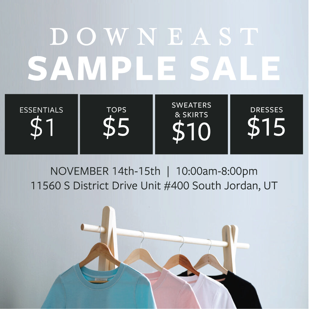 The $1 Essentials are the only pieces in this event that aren’t samples, they come from our stock of older fits and styles. You won’t find this price in any other store except our South Jordan location, and only during the Sample Sale.