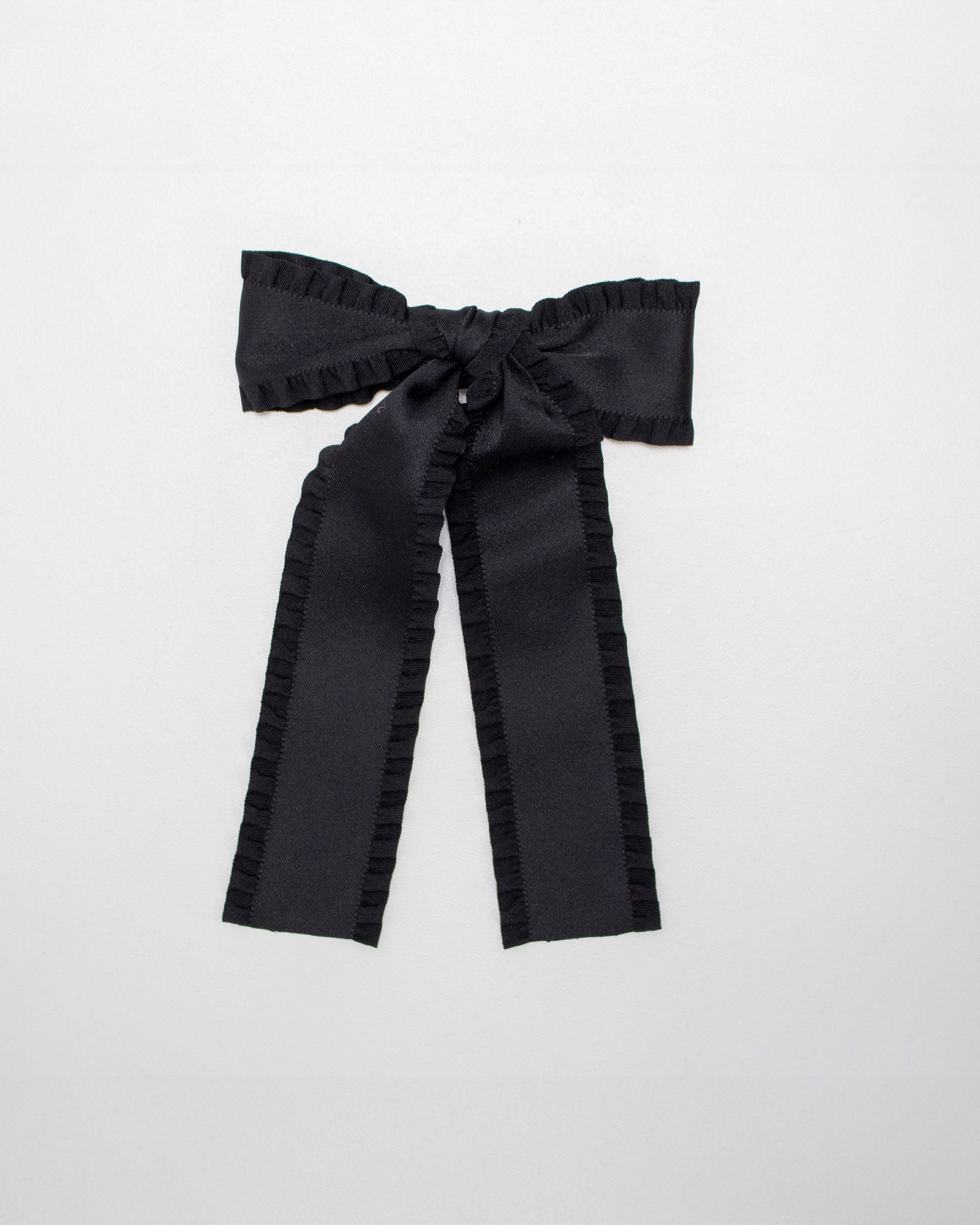 Black hair bow with ruffled trim