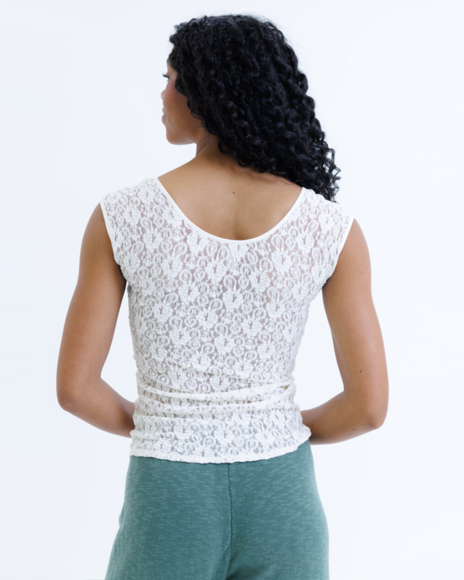 Our best-selling Wonder Tee is back in a new lace fabric! This soft, stretchy tee is perfect for adding extra coverage and style to any outfit.